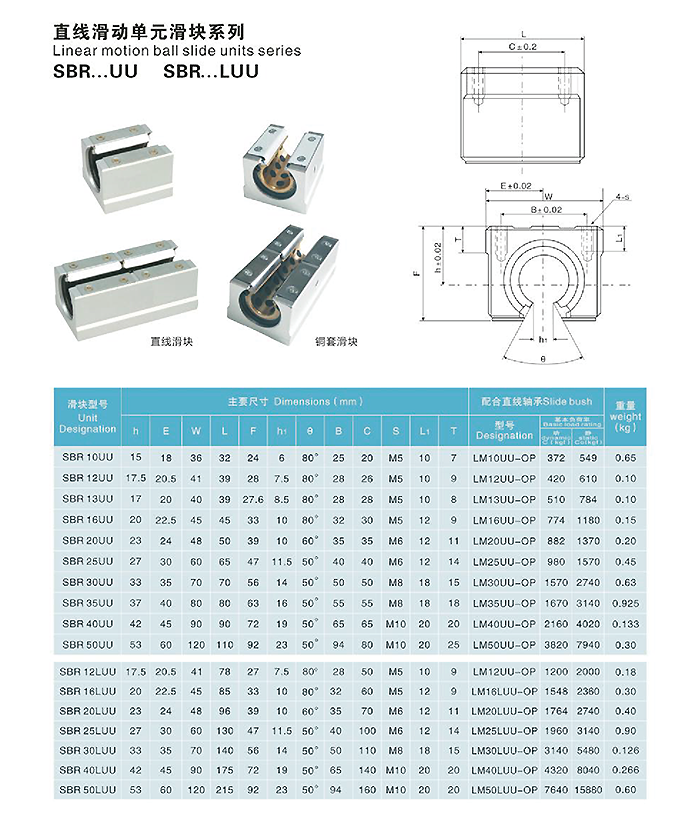 直線滑動單元滑塊系列SBR...UU SBR...LUU